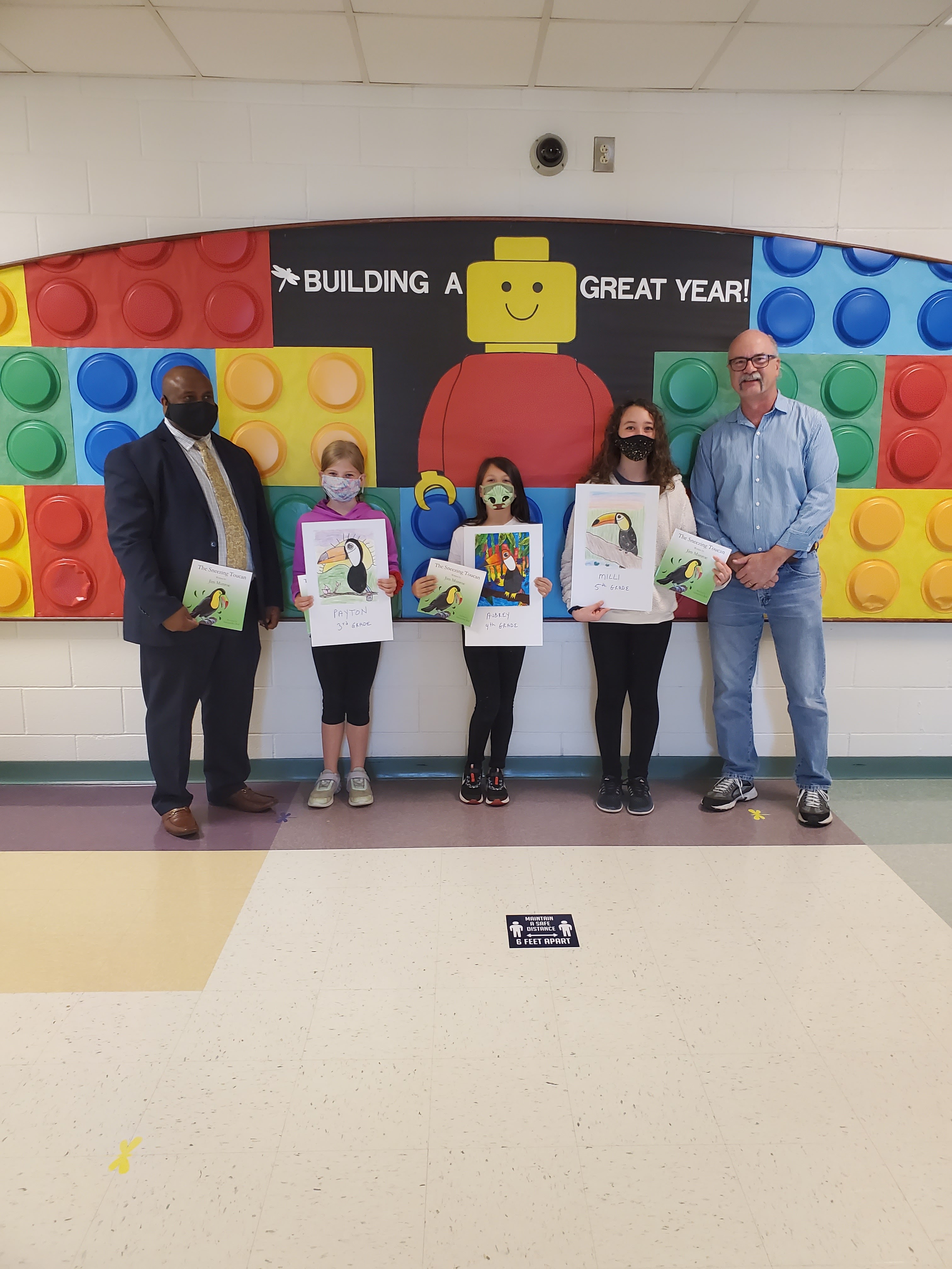 As a reminder, if you didn’t see the launch live, you can view it on Youtube and just look for The Sneezing Toucan. There have been well over a 100 views and I hope if you haven’t already, leave a comment and as Harper says, mash the thumb. I don’t expect to have a million views anytime soon, but you gotta start somewhere. I was so happy to distribute copies of the book to all the drawing contest winners in Nebraska and North Carolina. If you didn’t see this already, here is a picture from Dixon Road Elementary. I hope in the Fall when school starts again, I can make it to the other schools that participated and meet those great kids and their incredible teachers.